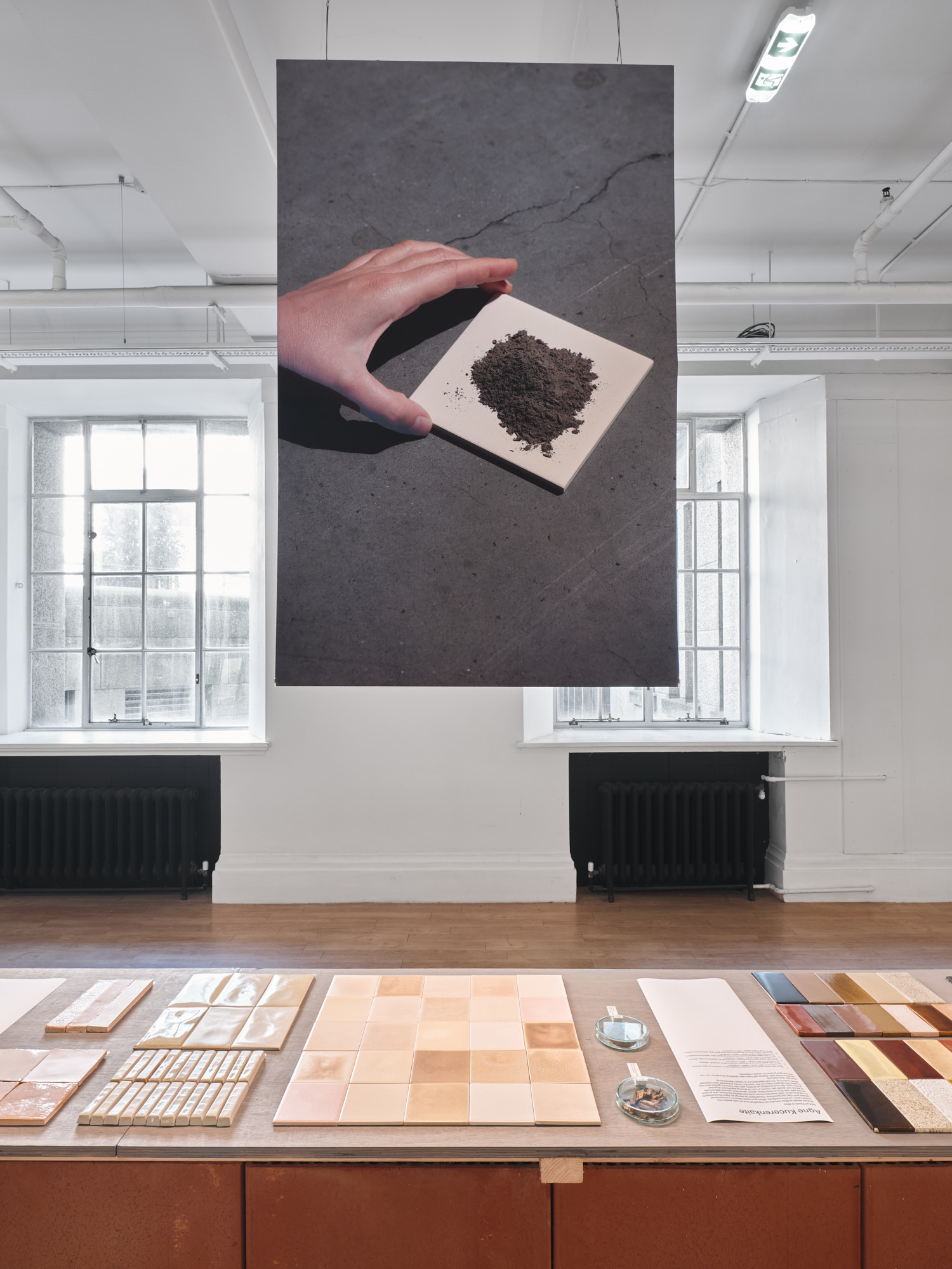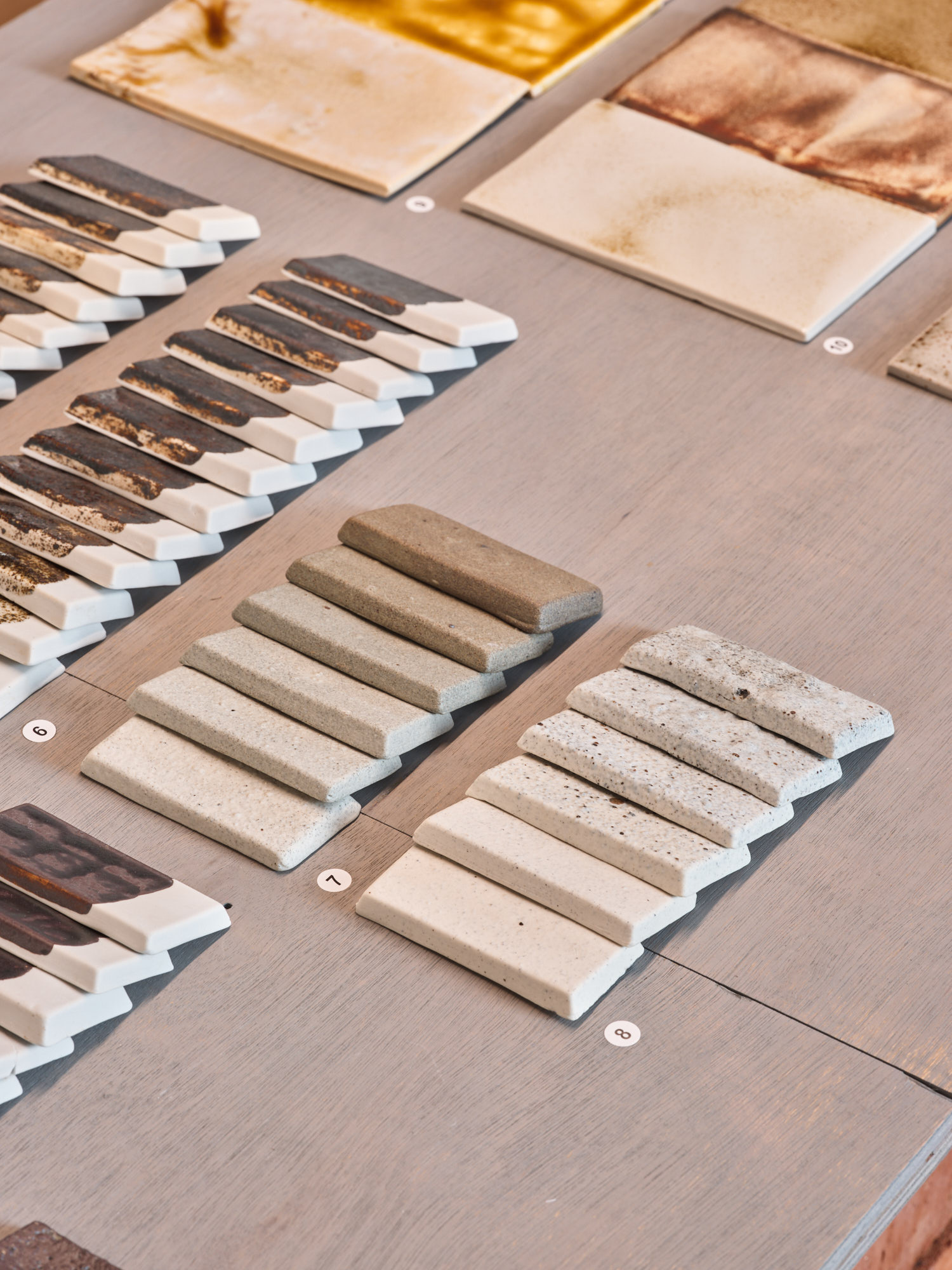 To illustrate, let’s delve into the Ignorance is Bliss ceramic tableware and tiles project: metal waste arrives in the form of sludge, often wet. This mixture has high concentrations of metals and organic matter. While no extraction process is necessary, the sludge undergoes meticulous preparation, including drying, milling, and sieving, to make it suitable for use as a pigment. Once transformed into powder, it can be integrated into ceramics. During the firing process, minerals alongside metals play a crucial role, influencing the final outcome.