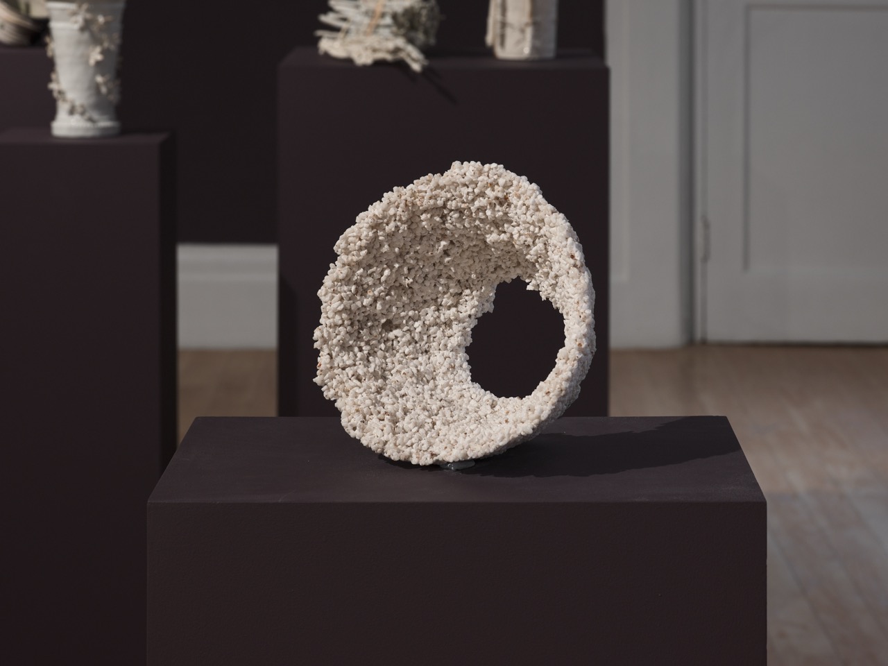 I usually start with small material tests; from there I find interesting results to develop on, whether it is scaling up or sculpting forms my process is responsive to material behaviours. Usually from the materials and the tests it informs my concept and provoke emotions, and some of the pieces could be fired multiple times as I sometimes do have an envisioned result, but I intend to let the process drive my artistic response.