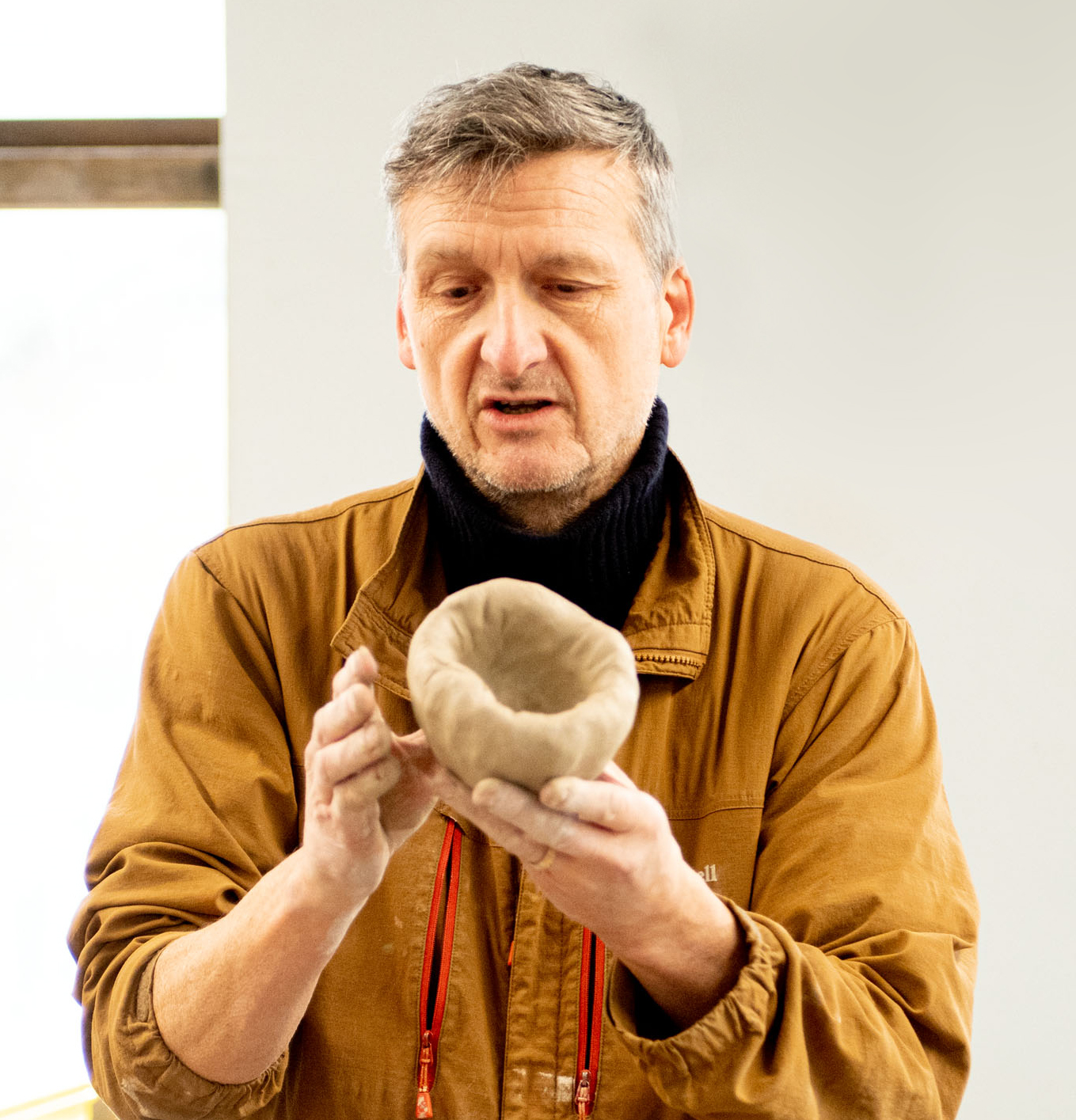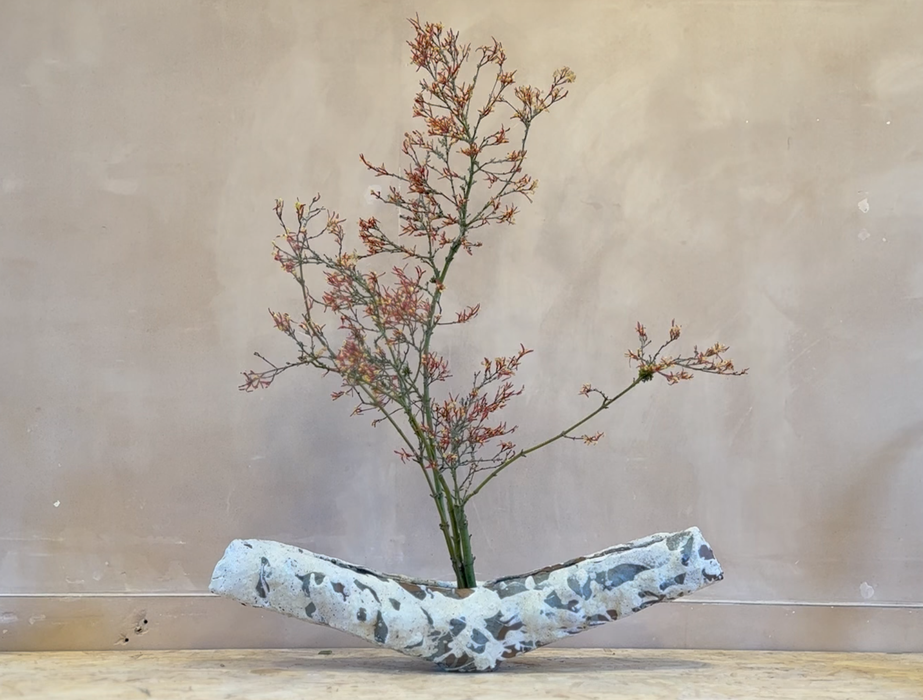 The course is led by Tim Copsey, a practising ceramic artist whose work responds to the landscape and seasons of the Peak District. His practice explores texture, movement, and surface, drawing from waterfalls, peat pools, and layered rock formations. He has a long association with Ikebana and regularly collaborates with Ikebana artists through commissioned vessels and co-led workshops.